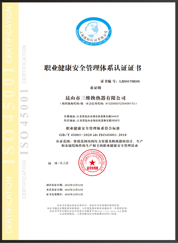 A2壓力容器制造許可證,D1/D2壓力容器設(shè)計(jì)許可證;GC2管道安裝許可證;ASME U/NB鋼??;ISO9001、ISO45001、ISO14001體系認(rèn)證證書等。
